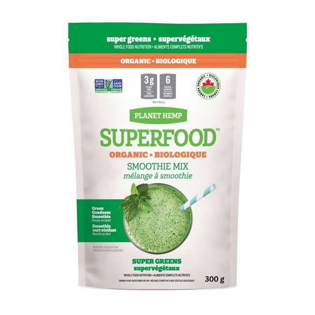 ヘンプシードをすりつぶして粉末にしたヘンププロテインパウダーにスーパーフードとして有名なスピルリナやクロレラをブレンドしたスムージーミックス スーパーグリーンズは、女性が特に不足しやすく意識して摂りたい鉄やミネラル、タンパク質が豊富に含まれており、美容やダイエットの強い味方です。
