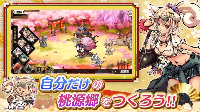 また本作では、集めた「ひめがみ」で自分だけの桃源郷を作れる箱庭システムがあるのも魅力の一つです。お気に入りの「ひめがみ」を集めたら、家具や建物、草花を使って自分だけの桃源郷にカスタマイズができます。