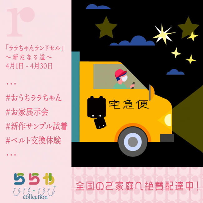 このような時期だからこそ、外出いただなくてもランドセルを自宅でお試し頂けるように、お貸出しのキャンペーンを実施させて頂きます。お子様の身体を第一に考えた「ララちゃんランドセル」及び「マジかるベルト」をぜひお試しください。