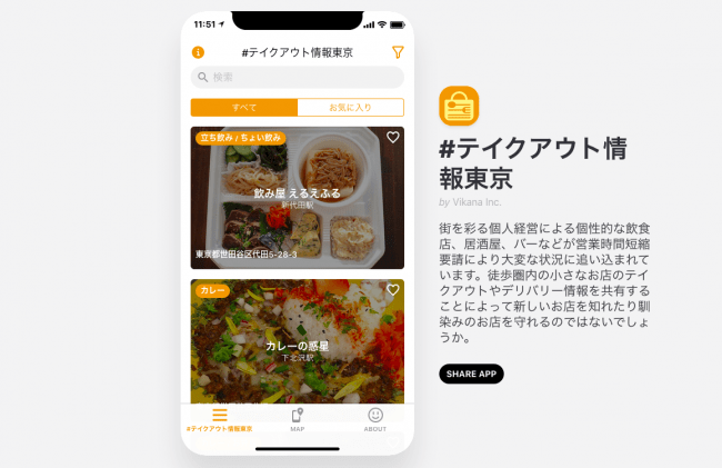 新しくテイクアウト / デリバリーを開始した飲食店の告知や集客などをお手伝いできないかと考えていたところ、ミュージシャンの松田 "CHABE" 岳二氏が Instagram で投稿していた「#テイクアウト情報東京」というハッシュタグを目にしました。
