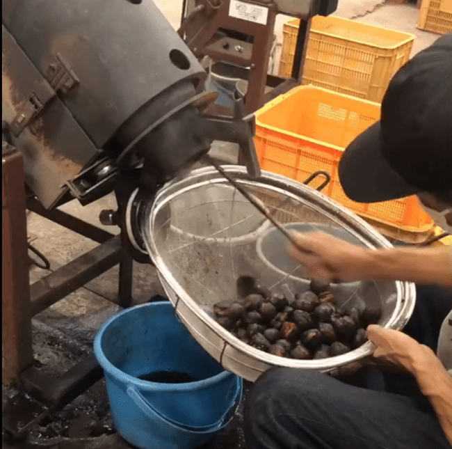 作業場の温度、湿度管理にも気を遣い、その結果として最高級の焼き栗が完成します。