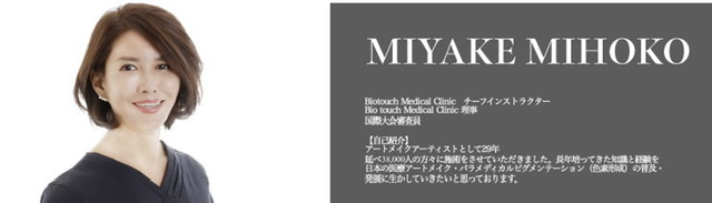 スクールでインストラクターを務め、これまで延べ38,000件※以上のアートメイクを手がけたトップアーティス ト三宅美帆子氏を招致し、医療アートメイクを提供します。 ※2010年~2019年12月現在