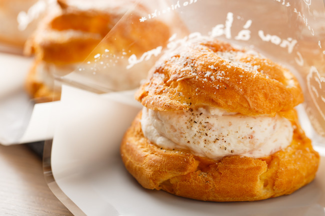 グジェールという、チーズを練り込んだシュー皮に生ハムのムースをつめました。