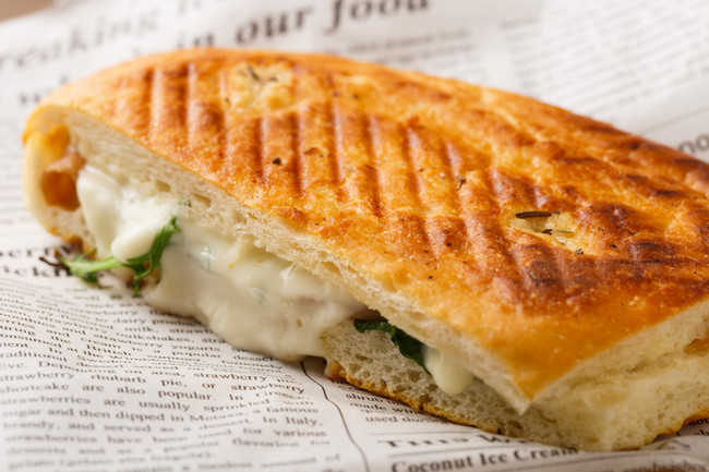 歯切れが良く、もっちりとしたフォカッチャに日替わりで自家製ハムやチーズなどを挟み、パニーニグリラーで香ばしくグリルしています。