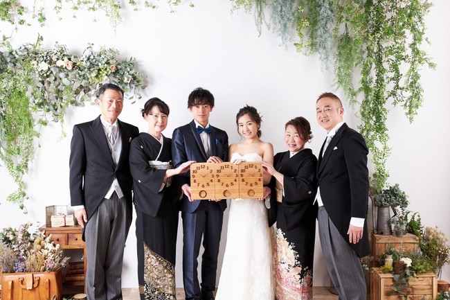 三連時計とは、無垢材の一枚板をカットして作る3つの時計。つながる木目を家族の絆になぞらえ、「新郎新婦とご両家、3つの家族でずっと同じ時間を歩んでいきましょう」と願いと感謝を込めて贈る、結婚式の両親贈呈品です。