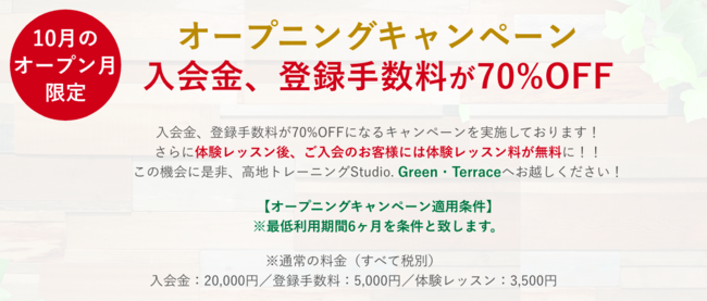 入会金、登録手数料が70%OFFになるオープニングキャンペーンを実施中!