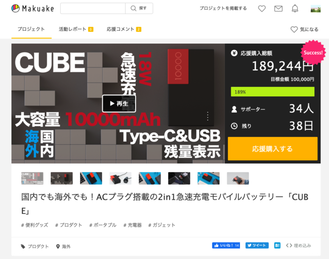 この度は弊社商品「CUBE POWER BANK」のプロジェクトページを最後までご覧いただきありがとうございます。