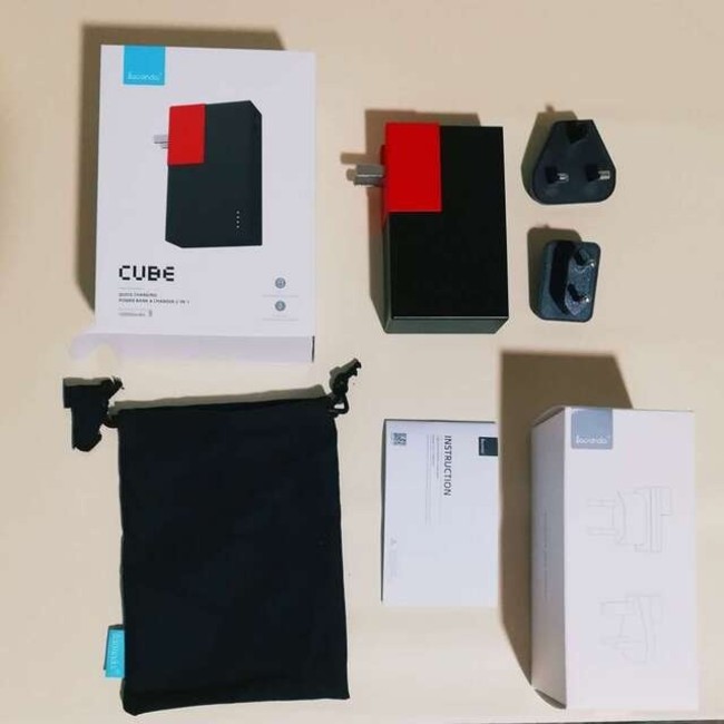 お洒落なキューブ型デザイン!大容量10000mAhバッテリーで18W急速充電!Type-CとUSBケーブルで2台同時に充電可能!海外用プラグ付きで旅行の荷物も減らせます♪