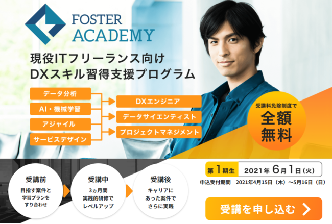 株式会社フォスターネット(本社:東京都新宿区、代表取締役:吉田 正弘、以下、フォスターネット)は、フリーランスITエンジニア向けに無料で受講可能なDX人材育成「FOSTER ACADEMY」をリリースいたしました。