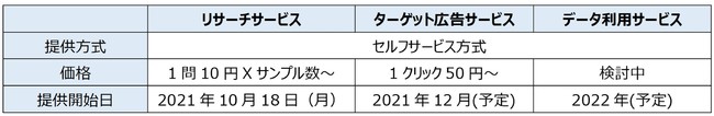 CBDでは、「リサーチサービス」「ターゲット広告サービス」「データ利用サービス」の3つのサービスを提供します。