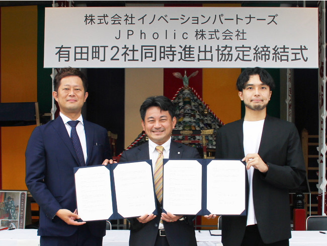 JPholic株式会社、株式会社イノベーションパートナーズ(本社:東京都港区)と有田町による2社同時進出協定締結式が下記のとおり行われました。