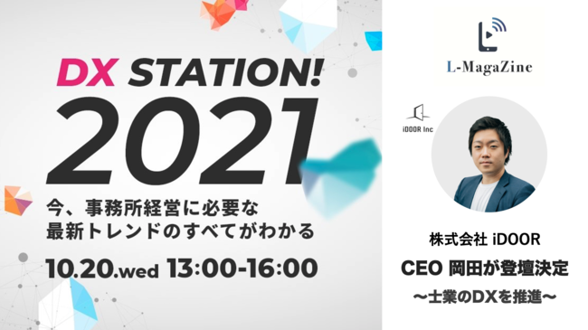 税理士・公認会計士が作った、士業向け動画配信システム「L-Magazine(エルマガジン)」を提供する株式会社iDOOR(本社:東京都品川区、代表者:岡田湧真、以下「当社」)は、株式会社エフアンドエム(本社:大阪府吹田市、代表取締役社長:森中 一郎)が主催する、士業事務所向けDX推進イベント「DX STATION!」に登壇いたします。
