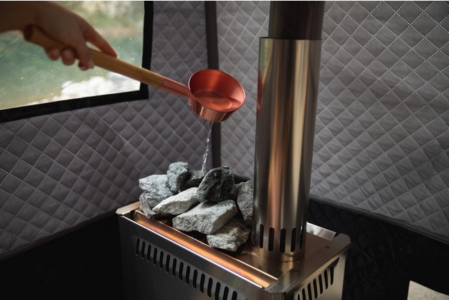 今回日本上陸第1号として取扱をスタートする製品は、ロシア国内で最も人気の高いモデル。コンパクトなサウナストーブは持ち運びがしやすく、ストーブの足もワンタッチで組み立て可能です。また、本製品のサウナストーブはストーンがなくてもロウリュができる蒸気発生器を搭載。持ち運びや立ち上げのスマートさに特化し、初心者の方でも気軽にアウトドアサウナを楽しんでいただけます。