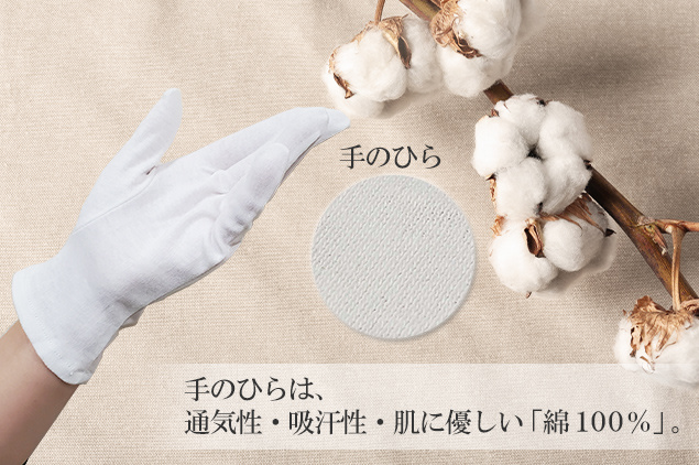 手のひらには通気性と吸汗性の良い綿素材を採用しました。