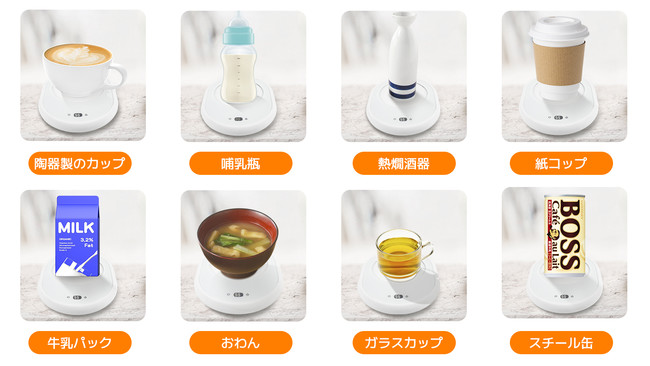 陶器製のカップはもちろん、ステンレス、ガラス、ミルクパックや哺乳瓶にもお使いいただけます。