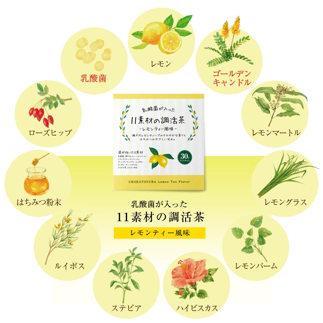 ●「乳酸菌が入った11素材の調活茶 レモンティー風味」3つのこだわり