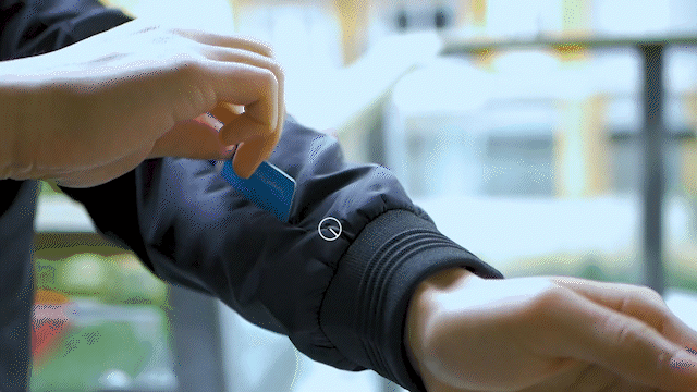 NIGHTHAWK Bomber Jacketなら、両袖のポケットに非接触型カードを収納できます。