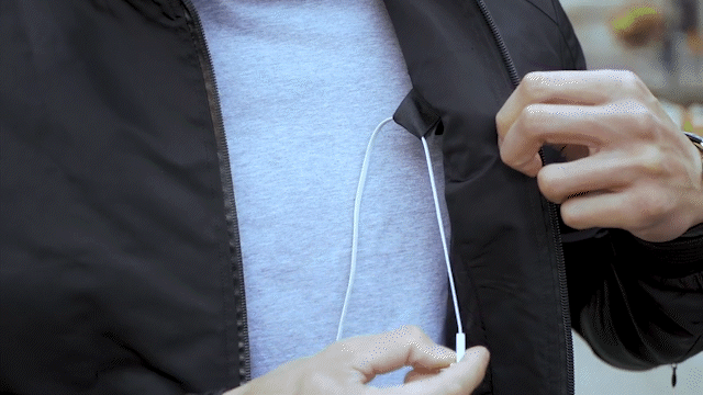 NIGHTHAWK Bomber Jacketなら、ジャケット内側のコードフックに掛けておくだけで、使いたい時にサッと装着できます。
