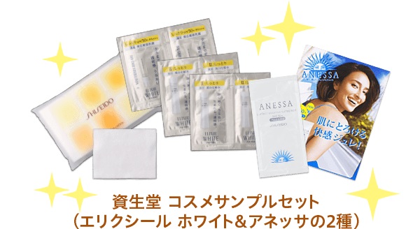 ② 資生堂コスメサンプル「エリクシール ホワイト スキンケアサンプル(2日分)」、「アネッサ パーフェクトエッセンスサンスクリーン(1回分)」
