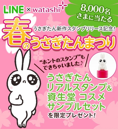 LINEスタンプで大人気のうさぎたんが“ホントのスタンプ”に!? 資生堂watashi+(ワタシプラス)×LINE 新作LINEスタンプリリース記念 『春のうさぎたんまつり』開催!
