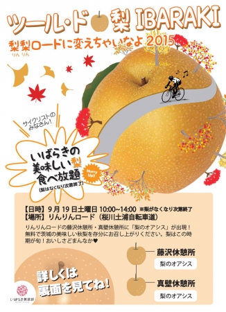 そこで、いばらき美菜部では、土浦市と桜川市を結ぶ旧筑波鉄道の軌道跡を利用した桜川土浦自転車道(りんりんロード)において、茨城が誇る名産品「梨」を無料提供します。