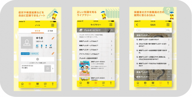 ・ライブラリー機能:アレルギーのしくみやアナフィラキシーになったときの対処法など正しい情報が得られます。