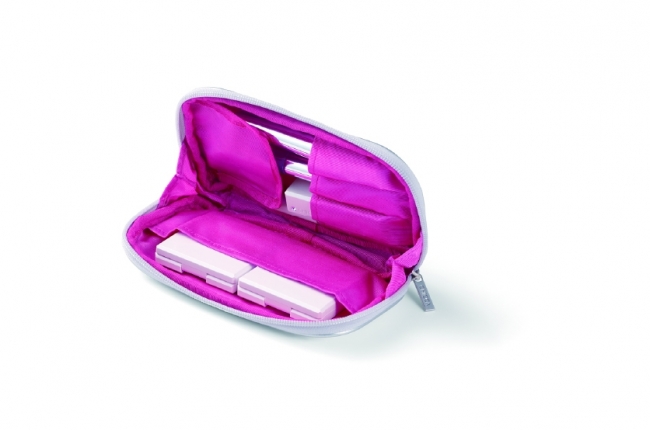 すっきりとしたフォルムに、内側は鮮やかなピンクのポーチ。アイシャドウやグロス、ブラシなど、メイクグッズがコンパクトに収まります。キッカ クリスマス コレクション 2015 ボディ