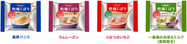 現在発売されているのは、期間限定商品を含む「濃厚バニラ」「ラムレーズン」「つぶつぶいちご」「一番摘み抹茶&ミルク(期間限定)」の4種類です。