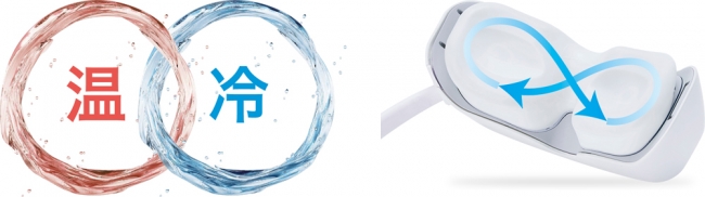 「ウォーターアイマスク」のマッサージ水流は「温水モード」と「冷水モード」を切り替えることができます。血行促進に効果的な「温水モード」は、眼精疲労やドライアイが気になるときに。炎症をやわらげる「冷水モード」は、目の腫れや目の下のクマが気になるときに。さらに肌をやわらげる「温水モード」と、引き締める「冷水モード」を繰り返すことでより効果的なアイケアができます。