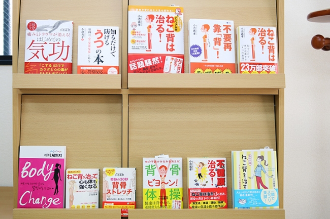 日本でねこ背本ブームを巻き起こした立役者。著書「ねこ背は治る!」はビジュアル版と合わせて34万部を超えるベストセラー。ねこ背本全体では60万部を超える。
