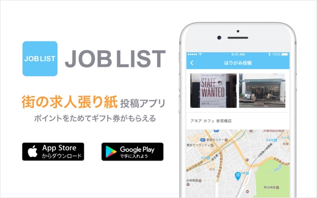 ゲーム感覚で『街の求人張り紙』を撮影・投稿してポイント集め。新感覚のアルバイト情報アプリ JOBLISTをリリース