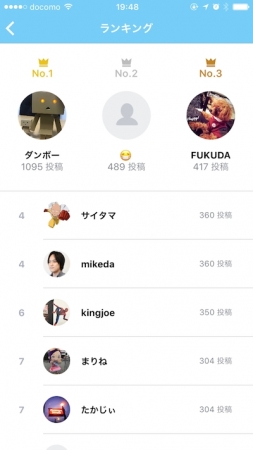 投稿数No1のユーザーは1,000件以上の投稿を行い、10万を超えるポイントを取得しています。