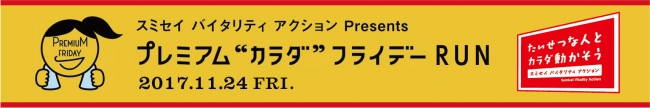 第1回目となる11月24日(金)は“スポーツの秋”をテーマとして、「月末金曜は、たいせつな人とカラダ動かそう」を合言葉に、健康増進に取り組む企業である住友生命保険相互会社を特別協賛に迎え、『スミセイ バイタリティ アクション Presents プレミアム“カラダ”フライデー RUN』を開催します。