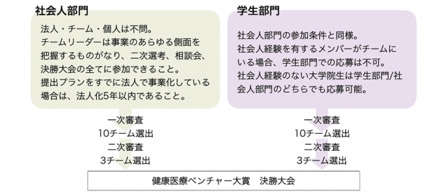 (4) 社会人経験を有するメンバーがチームにいる場合、学生部門での応募は不可。社会人経験のない大学院生は社会人部門・学生部門のどちらでも応募可能。