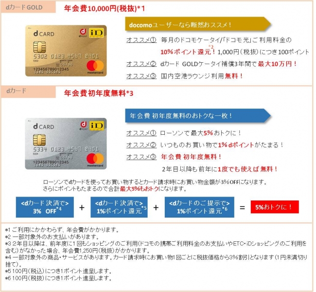 dカードは、”dポイントカードも電子マネー「iD」もこれ一枚!”の便利でオトクなクレジットカード。入会もWEBでカンタン!dカード GOLDなら、dポイントがよりたまりやすく、充実の特典も!