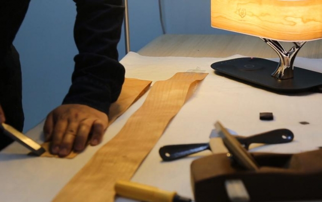 ライトに合う木目を職人が厳選して使用しております。