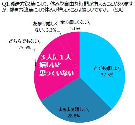 働き方改革で休みが増えることを嬉しいと思っていない人が、およそ3人に1人!