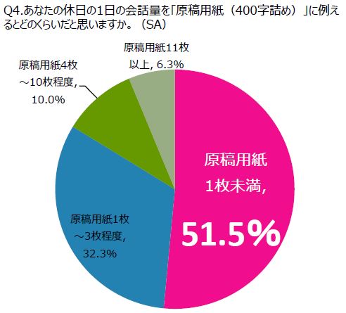休日の1日の会話量は原稿用紙1枚以下と回答する人が半数以上!