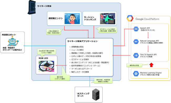 タッチ又はモーションによる操作により、体験者のログを収集することで、いつ、どのような人が、なにに興味をもって、どのボタンを押したのか、など、ユーザーの行動履歴として非常に重要なマーケッティングデータとなります。