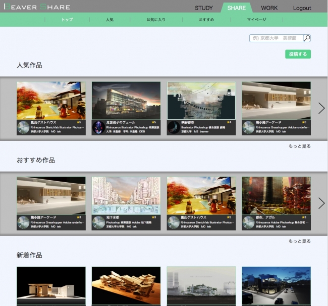 建築学生の設計課題作品をオンライン上でシェアするSNSサービス。