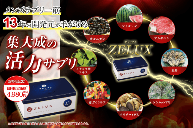 男性向け活力サプリメント専門店が新製品「ZELUX」をリリース!