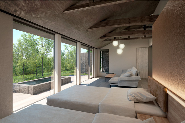 この度のリニューアルでは、美肌の湯を贅沢に愉しみ、自然と共に過ごす体験と、自分を大切にする時間を作り、私たちの本質を日常に持ち帰るための客室づくりを目指しました。