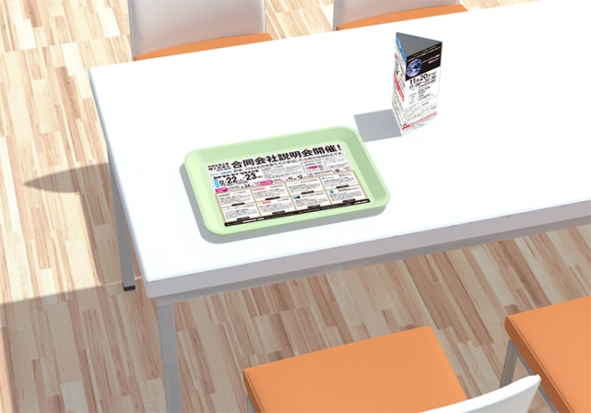 学食のトレイ(=おぼん)を活用した学生特化の広告媒体!新卒採用の新たなツールとして話題に!