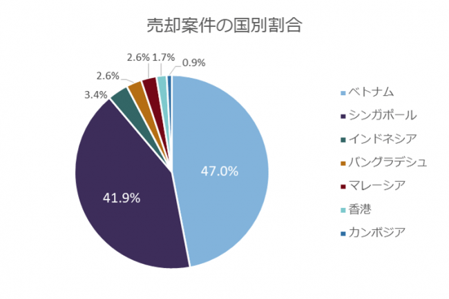 一方、当社が直近1年間で入手した売却案件についても、ベトナム案件が最多の47%を占めており、