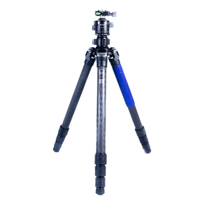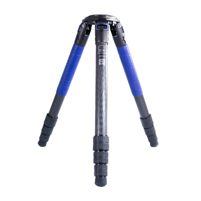 AOKAのシステマティック三脚のフラッグシップモデル。業界トップクラスの10層カーボンパイプを採用しており、耐荷重は40kgを実現。脚パイプ2本にラバーグリップを装備し、開脚ストッパーには同社のアクセントカラーであるブルーのアルミパーツが採用されています。