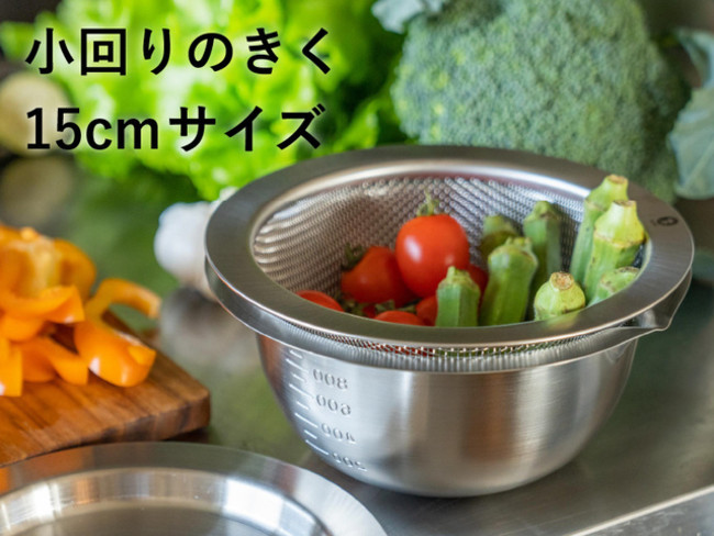 対して小ぶりな15cmはミニトマトなどの小物野菜を洗うときなど、ちょっとしたときに小回りが利くのでとても便利。この2サイズあれば、大抵のことはこなせてしまいます。