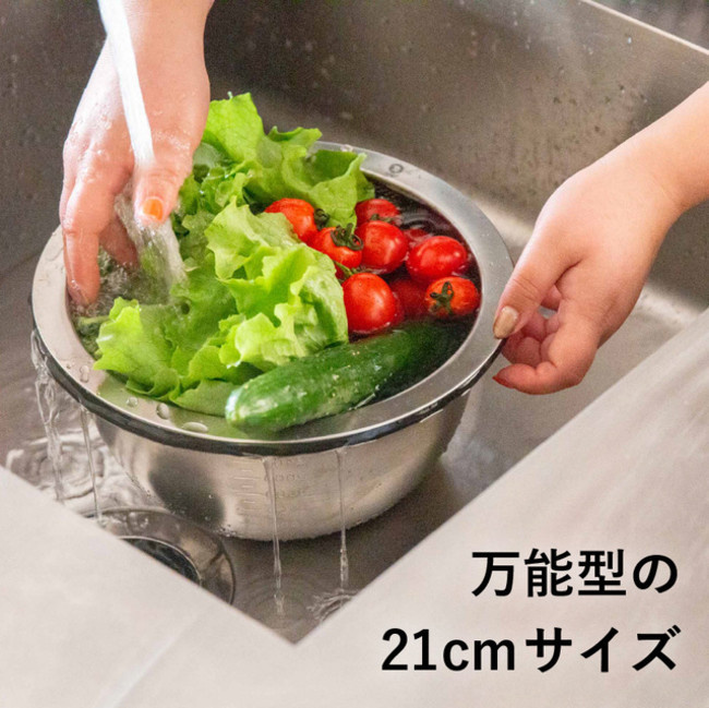 たとえば21cmには、かさばる葉物を洗うのにも最適。3合以上のお米を洗うのにもこぼれづらく、生地を練ったりするのにも丁度いいサイズ感です。