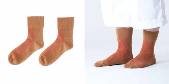 しめつけない製法に、二重仕立てで足首を温めます。一度履くと手放せない、ストレスのない履き心地です。