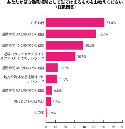 2018年7月に実施した“主婦が望む勤務場所”についてのアンケート調査において、61.0%の方が「在宅勤務」を選択し、1位となりました(※1)。コロナ以前から、主婦層は在宅勤務を望んでいたことがわかります。