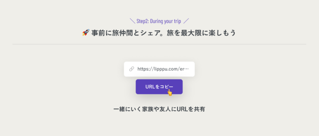事前に家族や友人の旅仲間とURLを共有し、Lipppuを片手に旅の道中をスムーズに。
